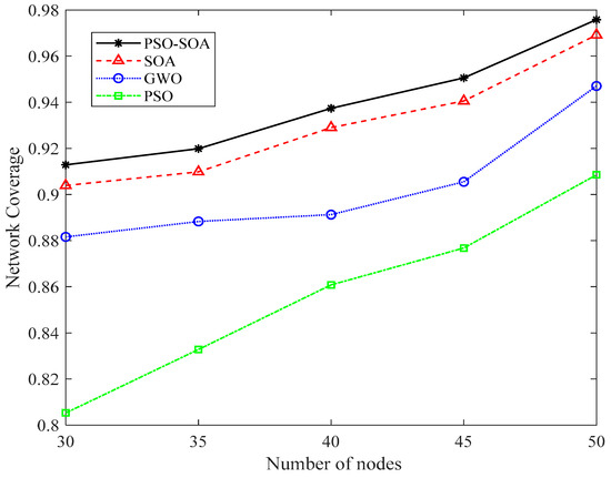 Comparison of network coverage under different number of nodes.