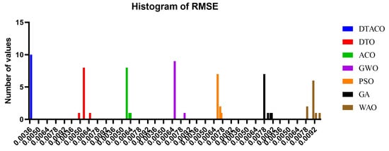 Histogram of the root-mean-squared error (RMSE) for both the DTACO-based model that was presented and the other models.