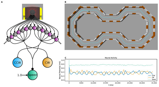 - Kaiser, J.; Tieck, J.C.V.; Hubschneider, C.; Wolf, P.; Weber, M.; Hoff, M.; Friedrich, A.; Wojtasik, K.; Roennau, A.; Kohlhaas, R.; et al. Towards a framework for end-to-end control of a simulated vehicle with spiking neural networks. In Proceedings of the 2016 IEEE International Conference on Simulation, Modeling, and Programming for Autonomous Robots (SIMPAR), San Francisco, CA, USA, 13–16 December 2016; IEEE: New York, NY, USA, 2016; pp. 127–134. [Google Scholar]