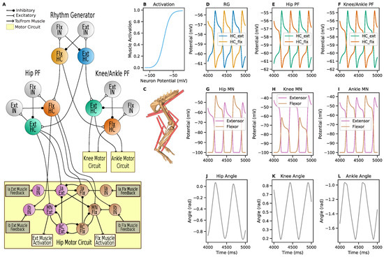 - Rybak, I.A.; Shevtsova, N.A.; Lafreniere-Roula, M.; McCrea, D.A. Modelling spinal circuitry involved in locomotor pattern generation: Insights from deletions during fictive locomotion. J. Physiol. 2006, 577, 617–639. [Google Scholar] [CrossRef]