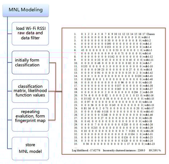 In this paper, the Multinomial Logit Model (MNL) method used different positions’ fingerprint information points in a real-time environment as a series of optional points (universal set of alternatives). For simplicity, the most probable positioning decision points were used as a subset of this universal set. A probability-based discrete choice model is defined as a series of linear combinations based on probability and random utility: