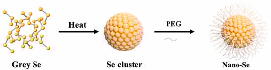 Schematic illustration synthesis of PEG-stabilized SeNPs. Reprinted with permission from [18] published under the Creative Commons Attribution license (CC BY-NC-ND 4.0) [45].