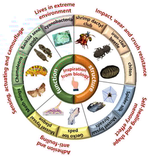 - Liu, K.; Jiang, L. Bio-Inspired Design of Multiscale Structures for Function Integration. Nano Today 2011, 6, 155–175. [Google Scholar] [CrossRef]