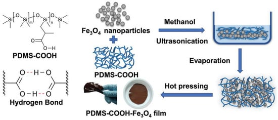 Zhang A. et al. [88] were the first to synthesize novel supramolecular SHSMs from a mixture of PDMS derivatives containing multiple COOH-groups, diethylenetriamine and urea. The obtained SHSMs have a low glass transition temperature of ca. −113 °C, rubber-like behavior, and autonomous SH properties at temperatures lower than RT [12].