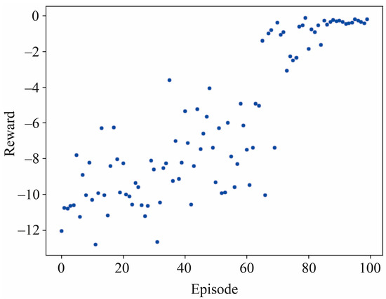 where is the one-step reward, denotes the mathematical expectation, is the discount factor, and is the adopted policy. Here, controls how important the entropy term is, known as the temperature parameter. The SAC updates the policy to minimize the Kullback–Leibler (KL) divergence [25,26],