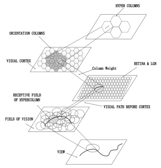 36] was proposed to simulate two functional structures of the cortex, the ocular dominance column and the orientation column. The former indicates which eye is more likely to influence visual processing, while the latter detects orientation features. We use the orientation column as the main bionic and computational modeling object in this study.