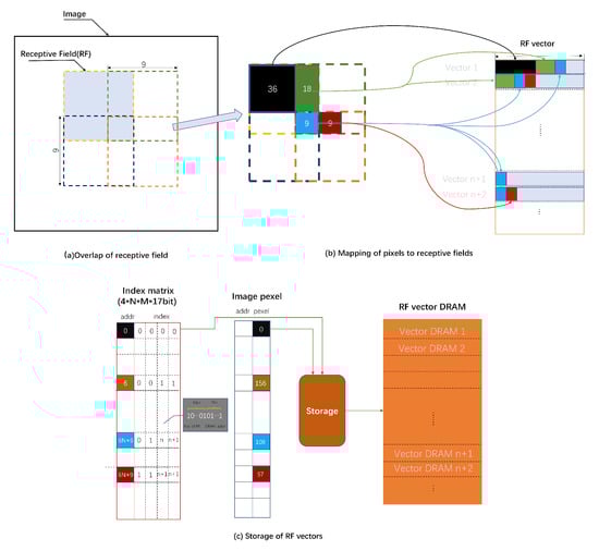 Only the first index corresponding to each pixel is shown, indicated by the blue line (index1). By the time the maximum jump is generated, the writing process of a receptive field is completed. The image to be processed is read simultaneously with the index counter, and the pixel values are obtained and written to the receptive field DRAM array.