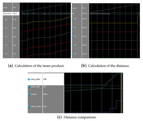 Finally, the simulation will enter the orientation chip selection phase, where the trained weights are expanded in bitwise form for distance calculation and comparison with the intermediate calculation results. The orientation chip selection module performs the computation after the select_valid signal is valid.