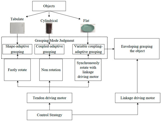 Figure 4. The control strategy of the finger’s three grasping modes.