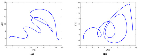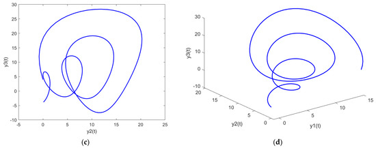 For practical application, let the EEG signal of the subject be taken at three different points of his cerebral cortex and considered as a three-time series describing the behavior in the three-dimensional space. In standard medical procedure, measuring sensors are placed on some defined points of the cerebral cortex. For this study, we considered the magnitude of electrical impulses at points P3, P4, and O1, as well as C3, C4, and T5, designated by coordinate , , and . A three-dimensional system based on these time series was constructed as: