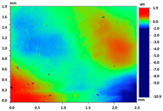 These counter-face specimens were fully characterized using 3D optical profilometer (Figure 3) Wyko NT1100 (Veeco, Tucson, AZ, USA). The counter-faces were examined three times using different areas on the surfaces. The main roughness parameters measured, for which average values are shown in Table 1, are as follows: