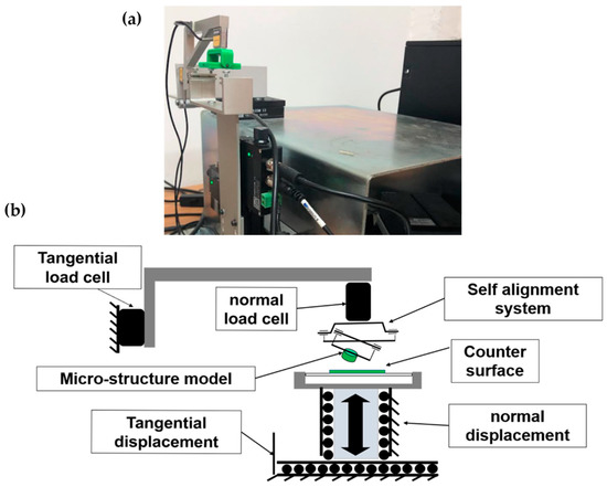(a) General view and (b) schematic illustration of the customized tribometer.