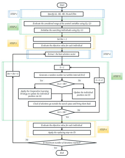 2.2. Novel ISAOA Version Incorporating a Cooperative Learning Strategy