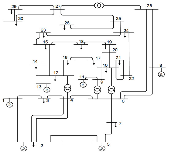 Schematic diagram of IEEE 30 bus grid [65].