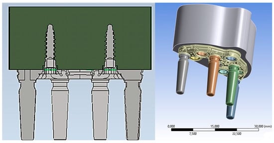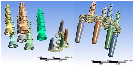 - Elsayyad, A.A.; Abbas, N.A.; AbdelNabi, N.M.; Osman, R.B. Biomechanics of 3-implant-supported and 4-implant-supported mandibular screw-retained prostheses: A 3D finite element analysis study. J. Prosthet. Dent. 2020, 124, 68.e1–68.e10. [Google Scholar] [CrossRef]