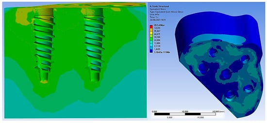 - Stress values did not exceed the bone strength limits of the basal bone and titanium alloy;