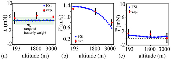 - Sridhar, M.K.; Kang, C.K.; Landrum, D.B.; Aono, H.; Mathis, S.L.; Lee, T. Effects of Flight Altitude on the Lift Generation of Monarch Butterflies: From Sea Level to Overwintering Mountain. Bioinspiration Biomim. 2021, 16, 034002. [Google Scholar] [CrossRef]