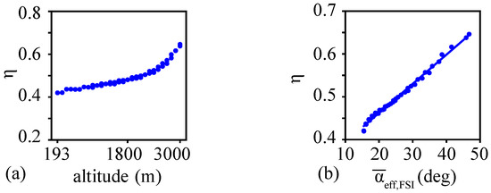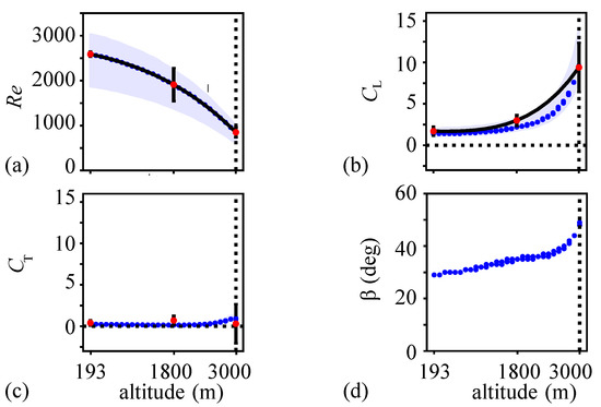 3.3. Reynolds Number, Lift and Thrust Coefficients, and Stroke Plane Angle Variations with Altitude