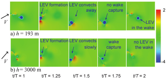 - Chen, L.; Wang, L.; Zhou, C.; Wu, J.; Cheng, B. Effects of Reynolds number on leading-edge vortex formation dynamics and stability in revolving wings. J. Fluid Mech. 2022, 931, A13. [Google Scholar] [CrossRef]