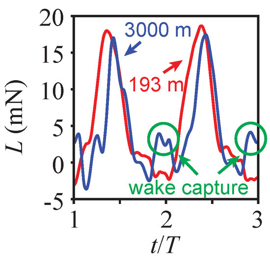 4.2. Wake-Capture Mechanism and Increased Efficiency in Thinner Air