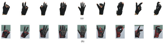 Human gesture information corresponding to human handover intention is obtained by a wearable data glove as shown in Figure 3a,b. The wearable data glove can be easily worn on a human’s hand. The wearable data glove contains six six-axis IMUs [40,41,42]. One of the IMUs is located on the back of the hand, and the other five IMUs are respectively located on the second section of each finger. The sensing data of these IMUs can be sent out through wireless communication (Bluetooth) in the data glove [43,44].