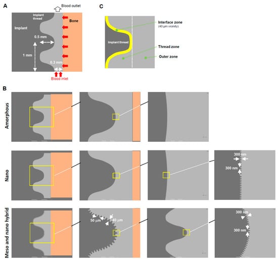 Kitajima, H.; Hirota, M.; Osawa, K.; Iwai, T.; Mitsudo, K.; Saruta, J.; Ogawa, T. The Effects of a Biomimetic Hybrid Meso- and Nano-Scale Surface Topography on Blood and Protein Recruitment in a Computational Fluid Dynamics Implant Model. Biomimetics 2023, 8, 376. https://doi.org/10.3390/biomimetics8040376