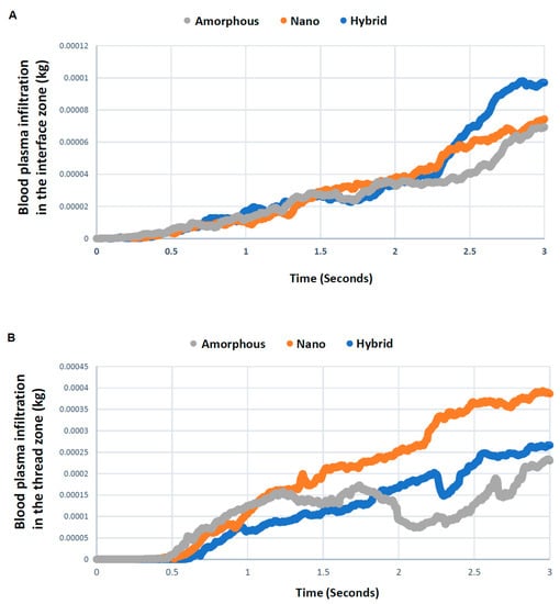- The blood movement was significantly slower at the implant interface compared with in the thread zone for all the topographies.
