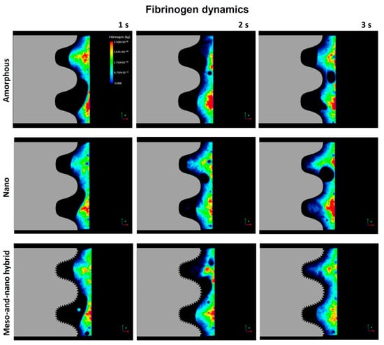 - Fibrinogen recruitment to the implant interface was the most efficient around the meso–nano topography and least efficient around the amorphous surface.