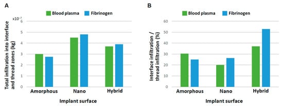 - Implants with nano-topography recruited more blood and protein to the implant interface compared with amorphous implants, and implants with hybrid topography further increased recruitment, with particularly efficient recruitment from the thread zone to the interface zone.