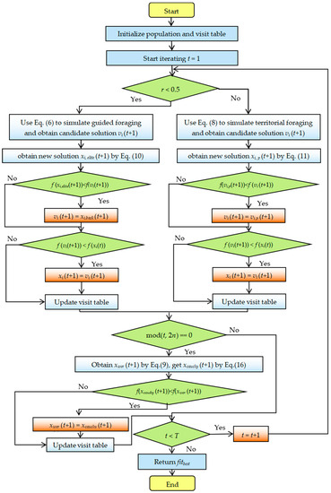 where f(xi(t)) and f(vi(t + 1)) represent the nectar replenishment rates of hummingbird food sources and candidate food sources, respectively; that is, the fitness value of the function.