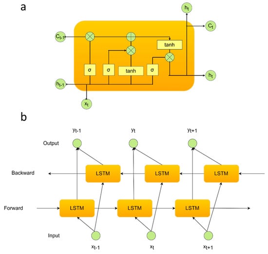 The internal architectures of the (a) LSTM and (b) BiLSTM deep models.