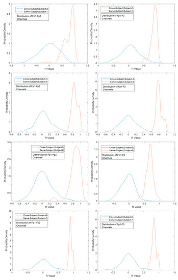 - Probability density function (PDF) distribution for the distinction individuals (cross-subject and same-subject) over the diverse scalp parts.