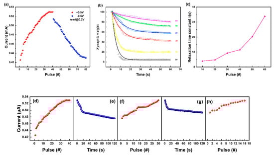 - Jang, B.C.; Kim, S.; Yang, Y.; Park, J.; Cha, H.; Oh, J.; Choi, Y. Polymer Analog Memristive Synapse with Atomic-Scale Conductive Filament for Flexible Neuromorphic Computing System. Nano Lett. 2019, 19, 839–849. [Google Scholar] [CrossRef] [PubMed]
