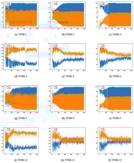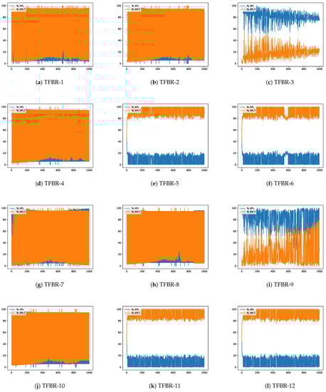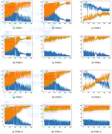 If we consider the exploration and exploitation percentages to be (exploration) and (exploitation), the percentages and are computed from the study of Morales-Castañeda et al. [] as follows: