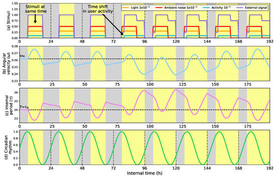 | External signal | Circadian clock | Intensity of stimuli | [] units |