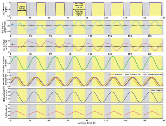 - Fourth, we present how the model deals with adaptive involuntary behavior, showing the adaptation of stress and heartbeat to ambient conditions to maintain their periodic peaks in the early morning h.