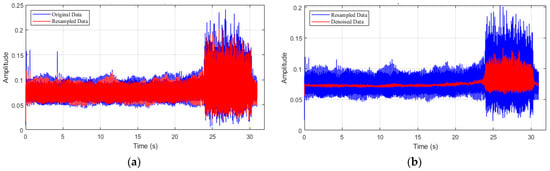 In the data processing, the sample data of the first-order spatial mode are resampled as 500 Hz. However, the resampling process may introduce additional noise signals, so it is necessary to denoise the resampled data. A local weighted regression technique is employed for this data processing. The resampled spatial mode is revealed in Figure 1, as well as the denoised process.