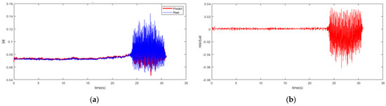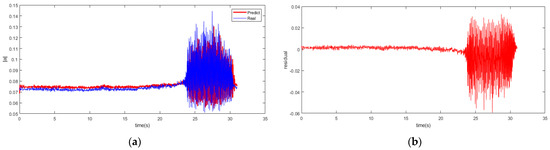 It is worth noting that there would be a certain degree of performance degradation with an increase in prediction step length. So, it is meaningful to select an appropriate prediction step length for the balance between the model accuracy and instability recognition margin. With the examinations of 5/10 prediction multi-steps carried out using the RBFNN-LSSA model, the prediction of the spatial modal amplitude is pictured with the 10 multi-step model in Figure 7, as well as the residual in the process.