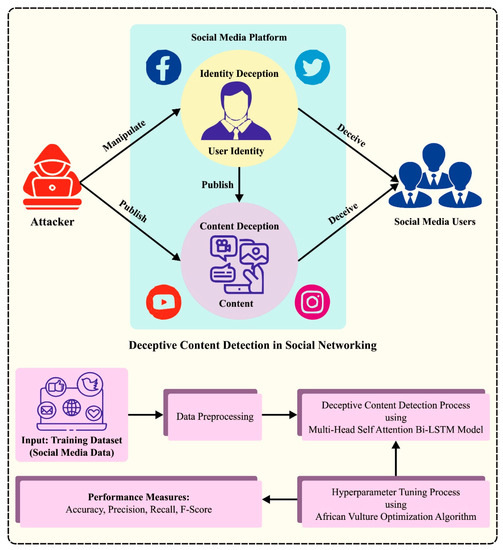 - Development of a novel BAINLP-DCD technique encompassing MHS-BiLSTM-based classification and AVOA-based hyperparameter tuning for deceptive content detection. To the best of the authors’ knowledge, the proposed BAINLP-DCD technique is a new contribution to the literature.