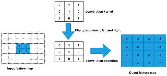 The size of the feature map after the transposed convolution operation can be calculated by Equations (6) and (7).