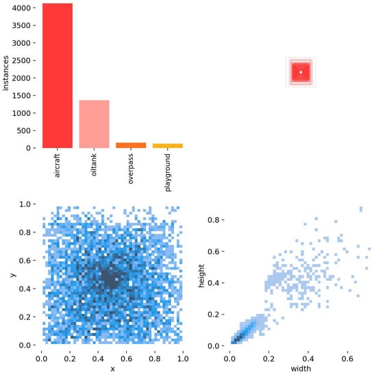 In addition, the sample RSOD dataset and dataset characteristics are shown in Figure 10 and Figure 11. As can be seen from Figure 10 and Figure 11, the sample dataset has too many small target sizes and complex background information and is characterized by multi-scale distribution.