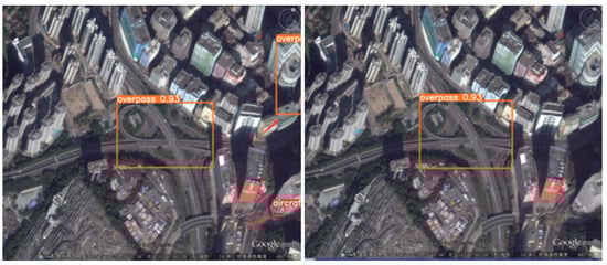 Finally, Figure 16 illustrates the detection of large scales with complex background information. YOLO-DRS still performs well in detecting large-scale targets and is able to reduce the problem of false detection of large-scale targets under complex background information.