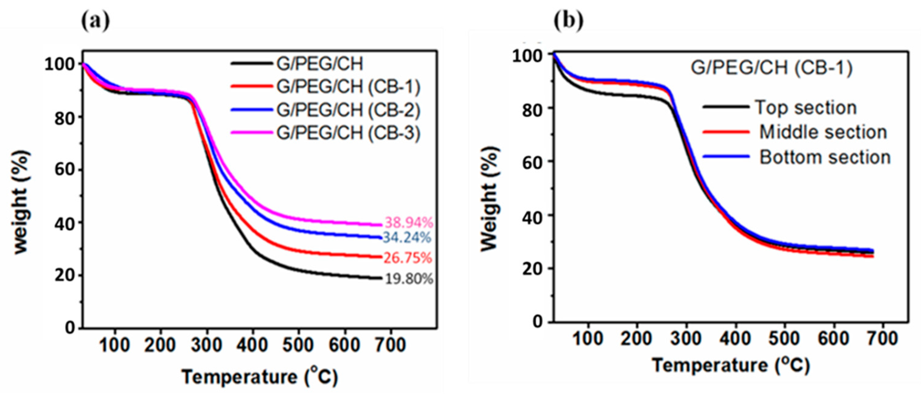 3.1. Preparation of G/PEG/CH (CB) Nanocomposite Hydrogels and Their Physical Properties