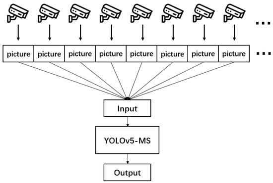 The comparative experiments presented in Table 4 reveal an interesting trade-off between the model’s mAP and its inference speed. This relationship is characterized by an inverse correlation; when the weight is increased, the mAP value tends to rise while the inference speed decreases, and conversely, when the weight is decreased, the inference speed increases, but the mAP value tends to decline. In this experiment, YOLOv3 exhibits a 0.4% higher mAP value compared to that of YOLOv5-MS. However, YOLOv3 has a significantly larger number of parameters than YOLOv5-MS does, resulting in YOLOv3’s inference time being more than twice as long as that of YOLOv5-MS. Specifically, using the YOLOv3 model, it requires 0.975 s to simultaneously process each frame from 50 cameras. Conversely, when employing YOLOv5-MS, this processing time is reduced to 0.416 s to achieve the same results. Consequently, if we utilize YOLOv5-MS to detect 100 cameras with adequate hardware capabilities, it would take the same duration as YOLOv3’s 50-camera detection, while maintaining a comparable accuracy. This translates to nearly halving the overall cost.