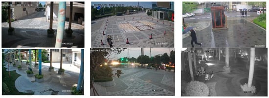 Twenty cameras are strategically chosen within the urban landscape, capturing dynamic pedestrian movements to construct the pedestrian dataset for a smart city. The image acquisition process involves capturing a single frame from a live video stream at intervals every 10 s. Image collection was orchestrated across various weather conditions, encompassing sunny, cloudy, nighttime, and rainy periods. This diverse approach was employed to bolster the model’s robustness. The dataset configuration is depicted in Figure 7. The image resolutions vary contingent on the camera specifications, with the camera models encompassing gun and dome variants. Given the prevalence of images lacking pedestrian information, a filtering process was necessary. Consequently, out of an initial pool of tens of thousands, a total of 5546 city pedestrian images were successfully acquired. The division between training and validation sets is at an 8:1 ratio.