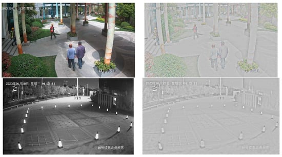 The algorithm’s pivotal attribute lies in its adeptness at harmonizing color constancy, edge enhancement, and dynamic range compression [], breaking the limitation that traditional linear or nonlinear can only be enhanced on one type of image feature. The Retinex algorithm is calculated using Formulas (7)–(9).