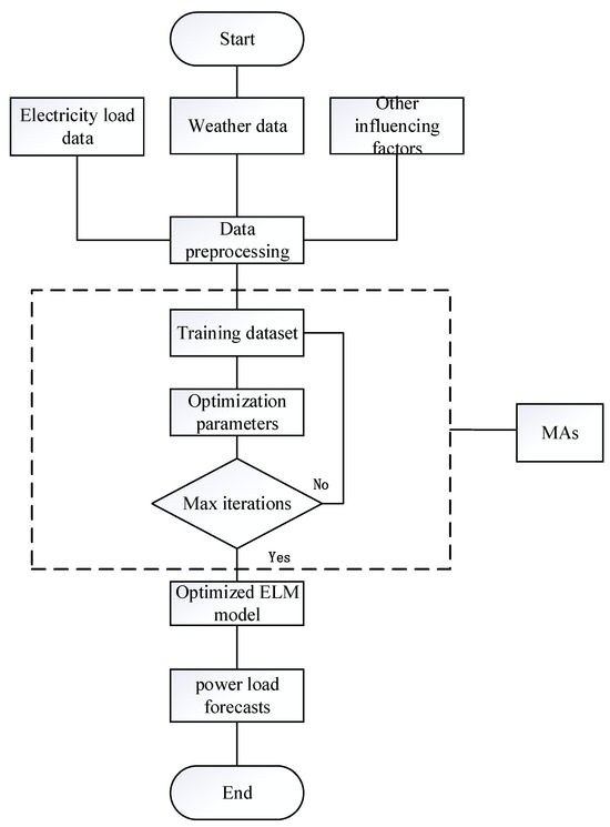 where m is the number of samples; is the actual load value of the test set; is the predicted load value of the test set; and the smaller the, , and , the more accurate the prediction effect of the algorithm.