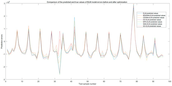 Comparison of prediction and true value errors of ELM model before and after optimization.