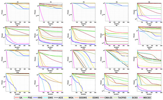 - Thirty standard test functions for intelligent optimization algorithm testing are used to evaluate the proposed MSCSO and compare the results with 11 other advanced optimization algorithms.