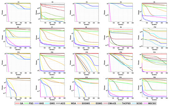 To verify the effectiveness of the MSCSO algorithm proposed in this paper, the algorithm was applied to two kinds of problems, global optimization (containing 30 functions) [35] and feature selection (containing 20 datasets) [36], which are also common complexity problems in many fields. Global optimization includes unimodal multidimensional functions, multimodal multidimensional functions, and multimodal fixed-dimensional functions. Unimodal functions are used to test the development ability of optimization algorithms, multimodal functions are used to test the exploration ability of optimization algorithms, and multidimensional functions are used to test the stability of algorithms. Feature Selection is considered an NP-hard problem: when a dataset has N features, 2N feature subsets are generated. Metaheuristic algorithms are widely used to find an optimal solution to NP-hard problems. Such as Ma et al. [37], Wu et al. [38] and Fan et al. [39] used global optimization functions to test their proposed algorithms. Wang et al. [40], Lahmar et al. [41], and Turkoglu et al. [42] used feature selection datasets to test their proposed algorithms. Finally, by comparing the results with many advanced algorithms in global optimization and feature selection problems, it is proven that the improved algorithm proposed in this paper has excellent performance.